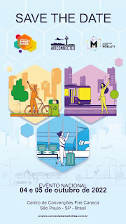 O Save the Date está lançado! A 8ª edição do Evento Nacional Connected Smart Cities & Mobility será entre os dias 04 e 05 de outubro de 2022, integrado à 3ª edição do AirConnected. O evento é o maior do Brasil que reúne projetos e debate ideias acerca da mobilidade urbana, cidades inteligentes e todo o setor aeroespacial. Neste ano, o Connected Smart Cities & Mobility e o AirConnected, realizados em setembro, reuniram mais de 300 palestrantes e, aproximadamente, 600 pessoas no Centro de Convenções Frei Caneca, em São Paulo, além de 2.400 acessos que foram registrados na plataforma de transmissão online.
